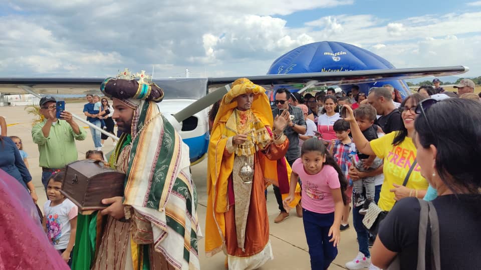 Ante la mirada expectante de más de 200 niños, niñas, padres y representantes que se reunieron este Día de los Reyes Magos en las instalaciones del Aeroclub de Valencia, arribaron a Carabobo Melchor, Gaspar y Baltazar, quienes previo a su aterrizaje en una moderna avioneta, que sobrevolaron el terminal aéreo para posteriormente aterrizar entre aplausos y vítores de todos los presentes.